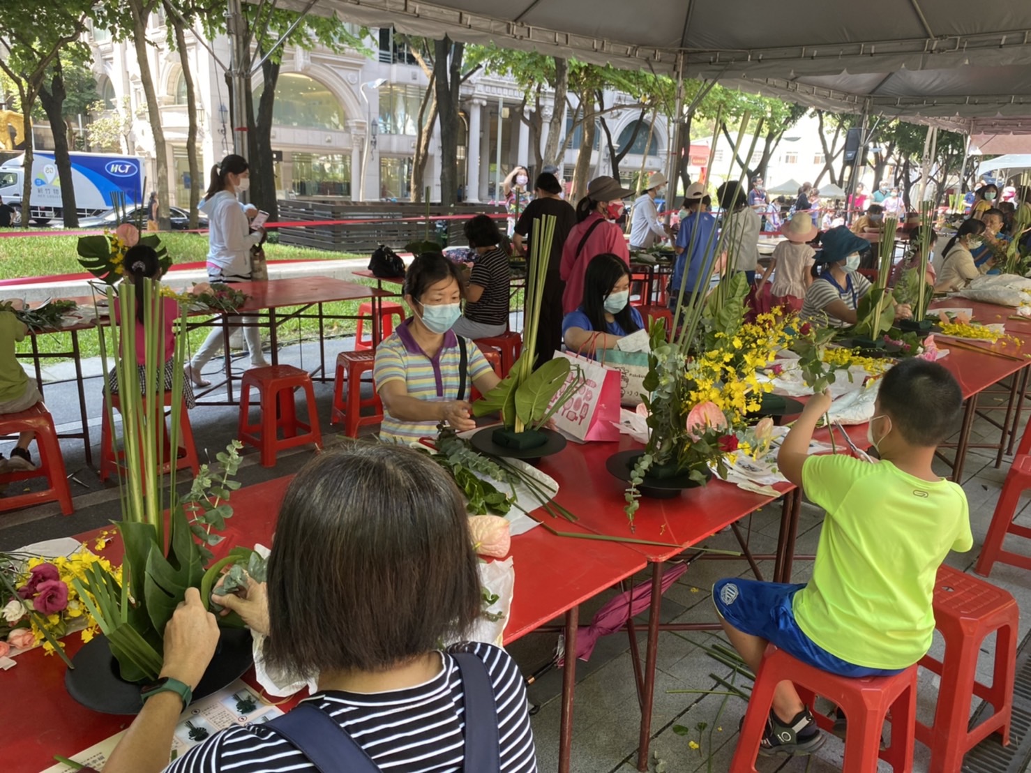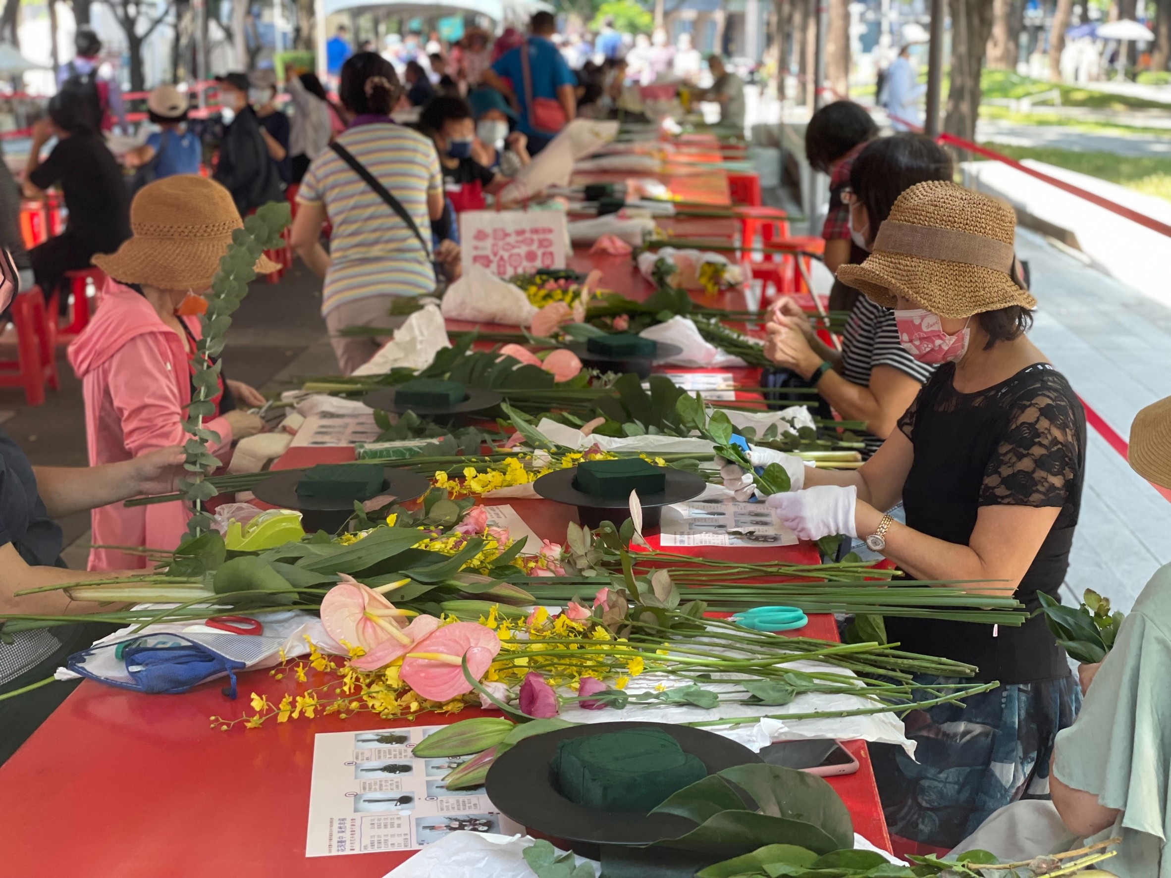 農業局表示,台中花卉產業豐富多元,栽培面積1,356公頃,主要產區包括后里、新社、外埔、北屯、石岡、東勢等區,生產文心蘭、百合、唐菖蒲、繡線、火鶴花、國蘭、彩色海芋、伯利恆之星等,切花年產量達2億支,深受國內外消費者喜愛。今日DIY體驗教學及花藝布置展示,邀請專業花藝老師使用在地生產的花材,帶領民眾透過手作接觸花卉設計,提升大眾對台中花卉的認識與喜愛,進一步增加花卉消費量,協助產業發展。
