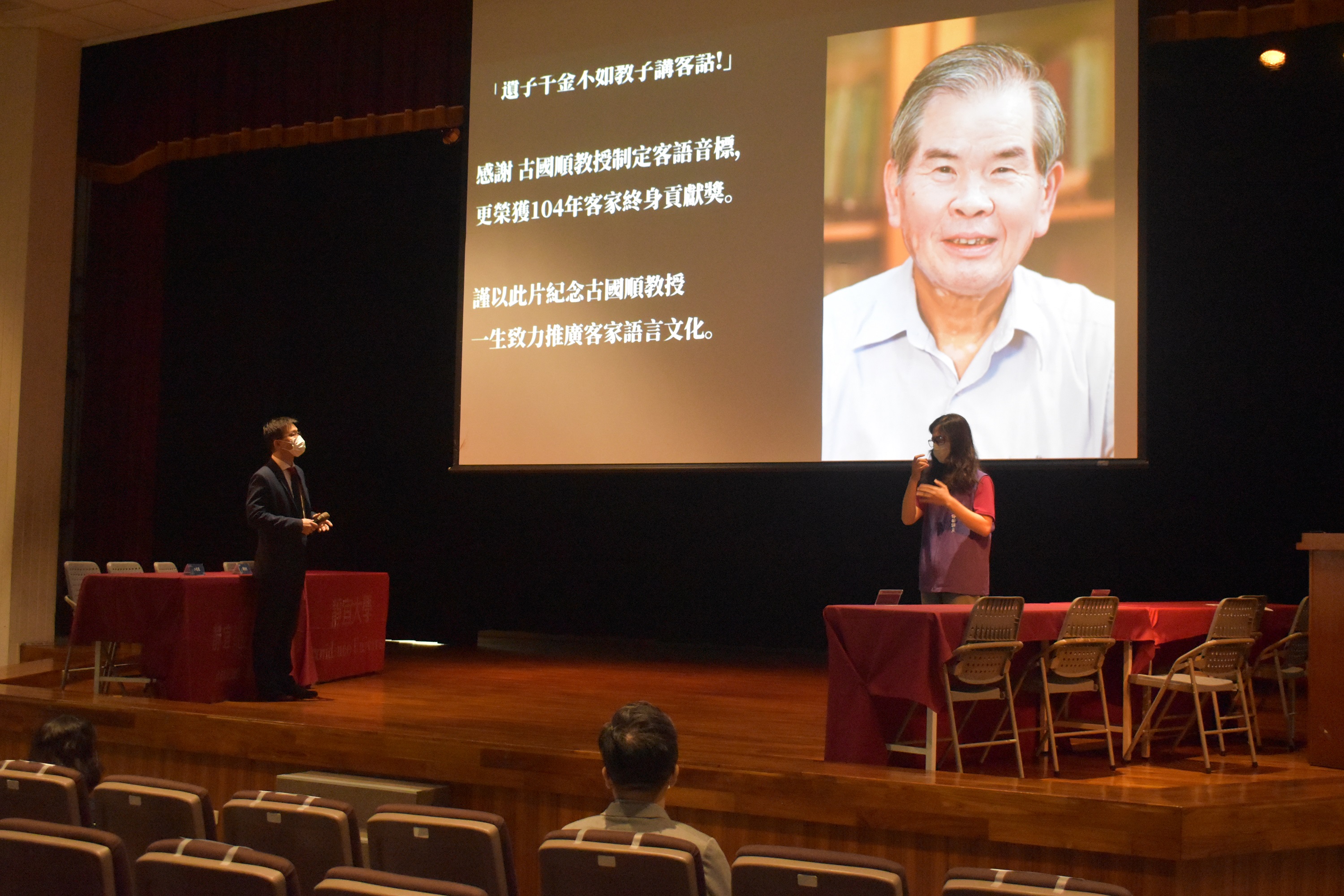 客委會說明,今日活動由學者古國順外甥康德民致詞,代表古老師家人轉達感謝主辦單位,也分享老師生前對客家語文的熱愛,在病榻上仍修改著學生論文,於最後時光仍為客家付出。活動還邀請台灣客家語文學會創會理事長羅肇錦及現任理事長鍾榮富以線上進行專題講座。