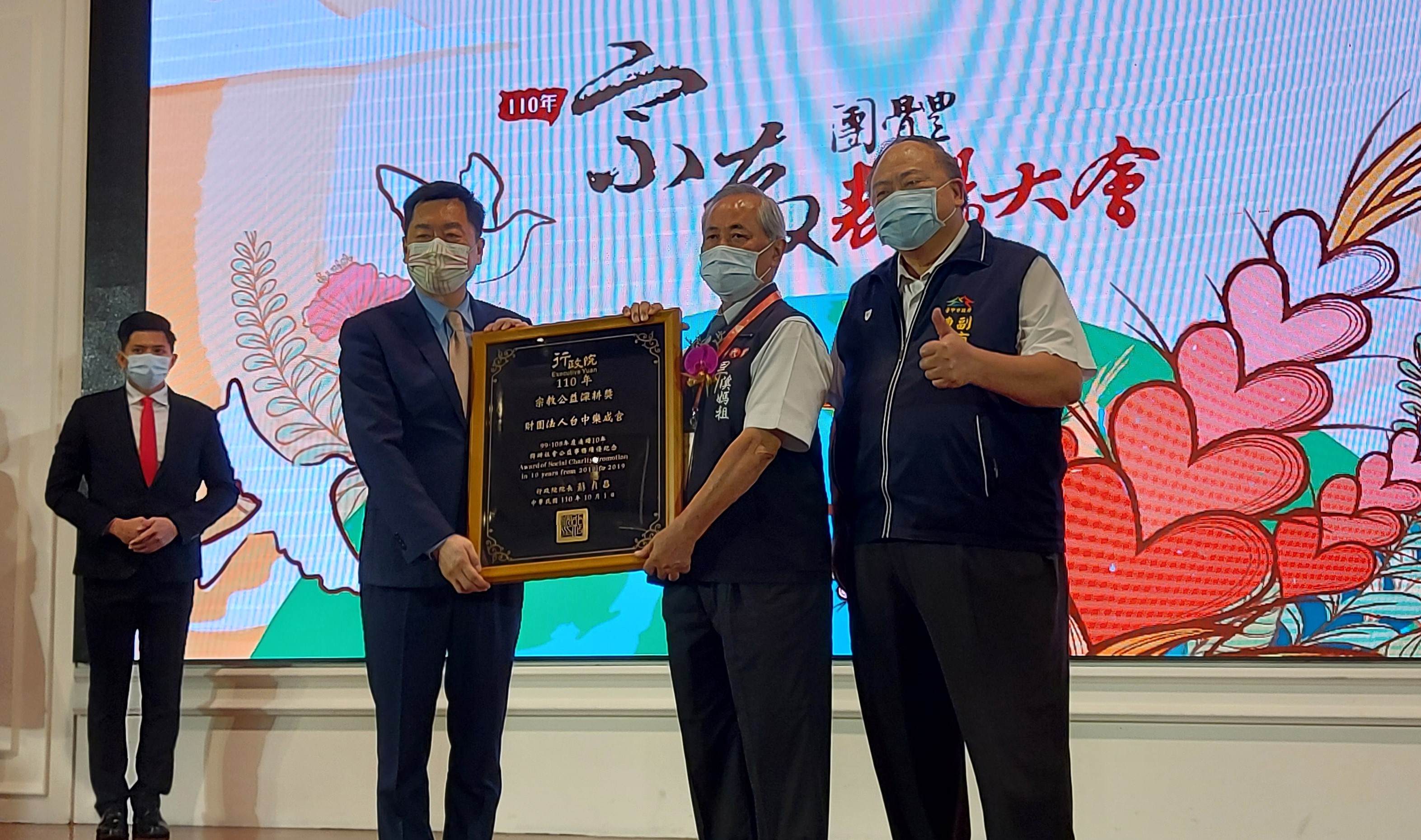 內政部「宗教團體表揚大會」全台共有160個宗教團體獲頒宗教公益獎,另有13個宗教團體獲頒公益深耕獎。今日除內政部政務次長陳宗彥出席頒獎,包括內政部民政司長呂清源、台中市副市長陳子敬、台中市政府民政局副局長徐照山、新北市政府民政局副局長楊薏霖、彰化縣政府民政處長賴致富、南投縣政府民政處長吳燕玲、苗栗縣政府民政處副處長王淑馨及內政部宗教諮詢委員等人也共襄盛舉。(10/1*8)*民政局
