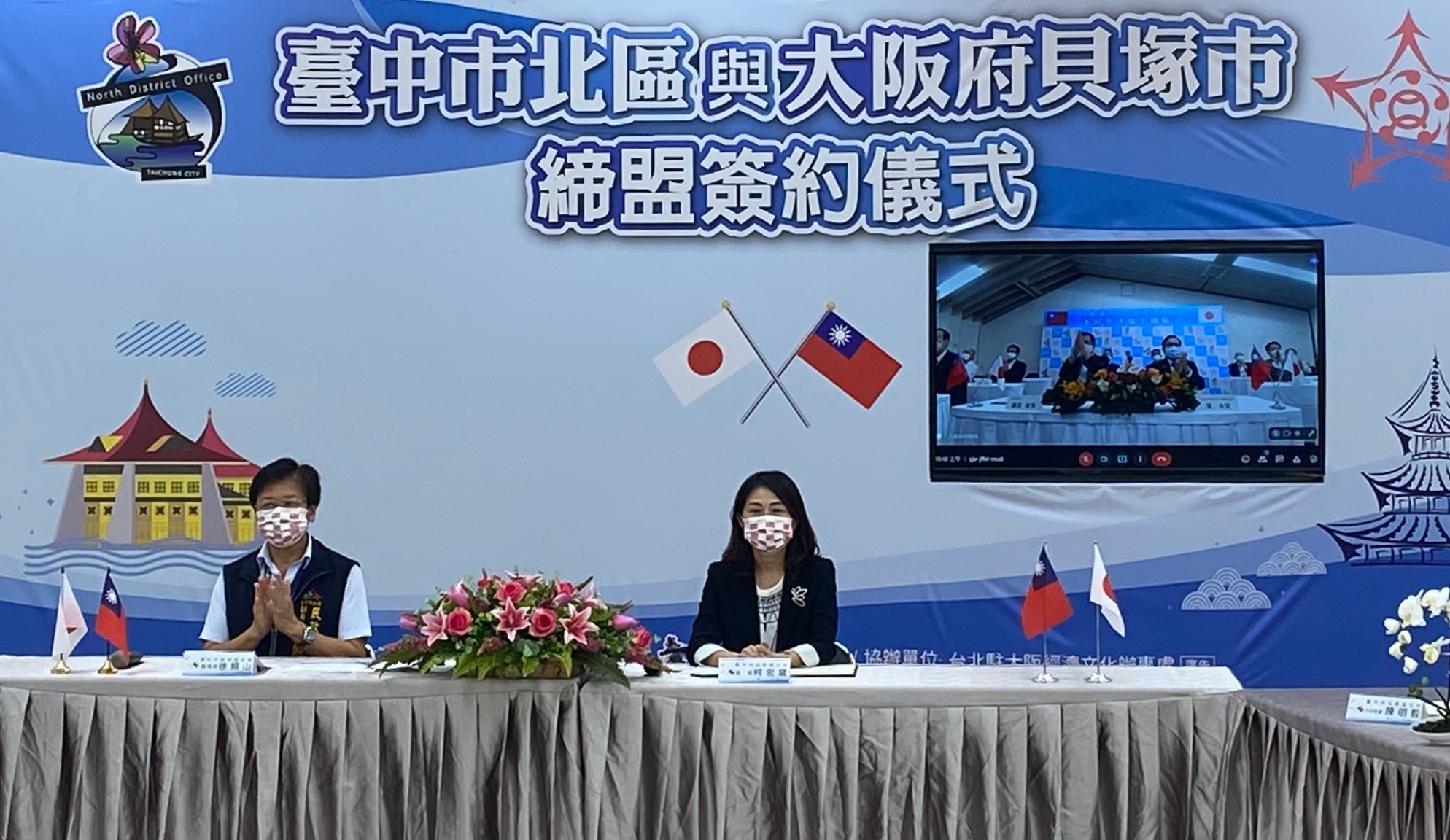 深化台日觀光、體育及教育交流,台中市北區與日本大阪府貝塚市昨(6)日透過視訊跨海締盟,由北區區長柯宏黛及貝塚市長藤原龍男簽署友好交流協定書。台中市政府民政局副局長徐照山代表市長盧秀燕出席見證。他表示,感謝日本多次對台援贈疫苗,彰顯台日人民同舟共濟的深厚情誼,期盼透過交流延續並加深台日各領域互動,促進彼此繁榮發展,共榮共好。