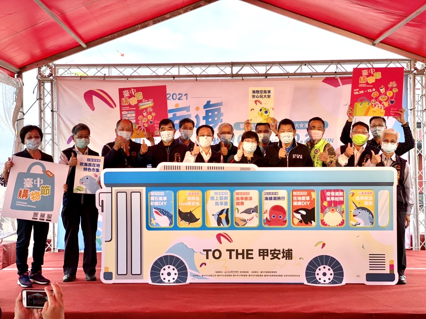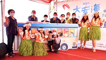 台中市政府觀光旅遊局舉辦「2021大安海觀光推廣活動」於(23)、明兩日在大安濱海樂園熱鬧展開,今日開幕活動由觀旅局長韓育琪與現場貴賓協力啟動甲安埔觀光列車,藉由觀光列車的行走視角暢玩大安海,現場湧現慕「箏」而來的民眾,一睹大安微解「風」。