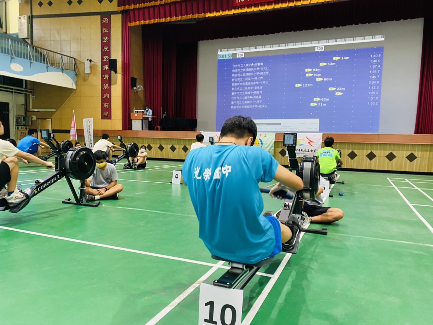 「110年全國秋季室內划船錦標賽」今(30)日於台中市大里高中熱鬧登場,賽事分為公開組、高中組、國中組、國小組及接力賽,吸引全國近40校選手齊聚較勁。運動局長李昱叡代表市長盧秀燕到場鼓勵來自各地的划船選手發揮實力、奪取佳績,將持續支持選手訓練及培育划船人才。