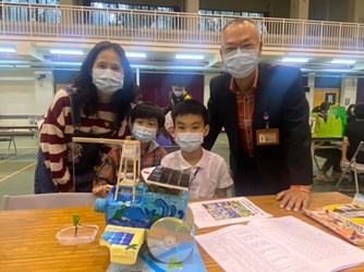 翁子國小陳同學分享,他們有一次經過低年級教室,發現學弟妹用削鉛筆機用得好吃力,因此想為學弟妹設計出一款靠太陽能就能自動削鉛筆的削鉛筆機,運用已經壞掉的削鉛筆機進行改裝,製作過程中發現不同齒輪比會影響太陽能削鉛筆機的運作,齒輪比越大拉力越強,越能更快削好鉛筆。