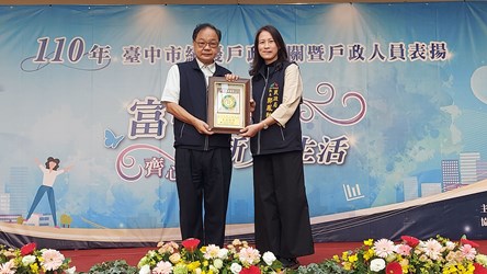 民政局說明,此次中區戶政事務所以多項優質創新服務榮獲「110年內政部績優戶政機關楷模」,而民政局及北屯戶政事務所長年全力配合內政部戶役政資訊系統主機點設施維運作業,今頒獎牌予以肯定。此外,獲獎績優戶政人員中,有長期深耕戶政,提供優質服務資深同仁;還有心思縝密,阻止不法冒領印鑑證明的鷹眼戶籍員,更有不畏艱難、上山下海解除疑難雜症的門牌承辦同仁,各個都是維護人民權益的重要功臣。