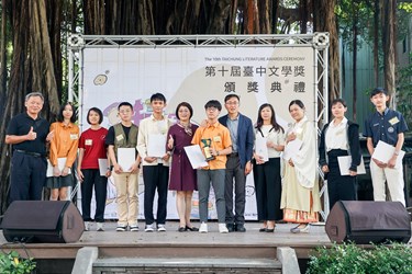 台中市政府文化局主辦,總獎金近160萬元的「第十屆台中文學獎」徵文活動,今(11)日在台中文學館舉行頒獎典禮,共有8大文類、63件作品獲獎,頒獎典禮特別邀請台中知名新生代劇作家林孟寰,改編此屆小說類第一名作品〈處暑〉,以讀劇表演形式詮釋文學創作,副市長黃國榮代表市長盧秀燕出席頒發獎金最高的小說類第一名獎項,鼓勵創作新星展露鋒芒後持續創作,在文學領域中耕耘。