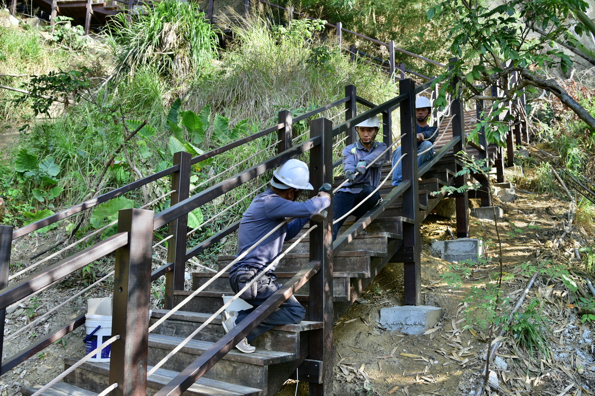 觀旅局說明,大坑4號步道主要針對起點至0+145路段拆除重建,考量通行舒適度,拓寬木棧道寬度約25cm;大坑9-1號步道因設施老舊,全線汰換整修,步道入口處農夫市集平台除重新整建外,也特別增設花架,讓民眾可以遮陽和休憩;另大坑10號步道邊坡多處崩塌,損壞最嚴重段為0K+750處,崩塌面積達367平方公尺,將近一個籃球場大小,最大垂直落差將近32公尺,經工人以蜘蛛人式施工方式,已完成邊坡保護工程,且為避免因豪大雨再次造成邊坡崩塌,特別增加草溝及導排水等相關設施。