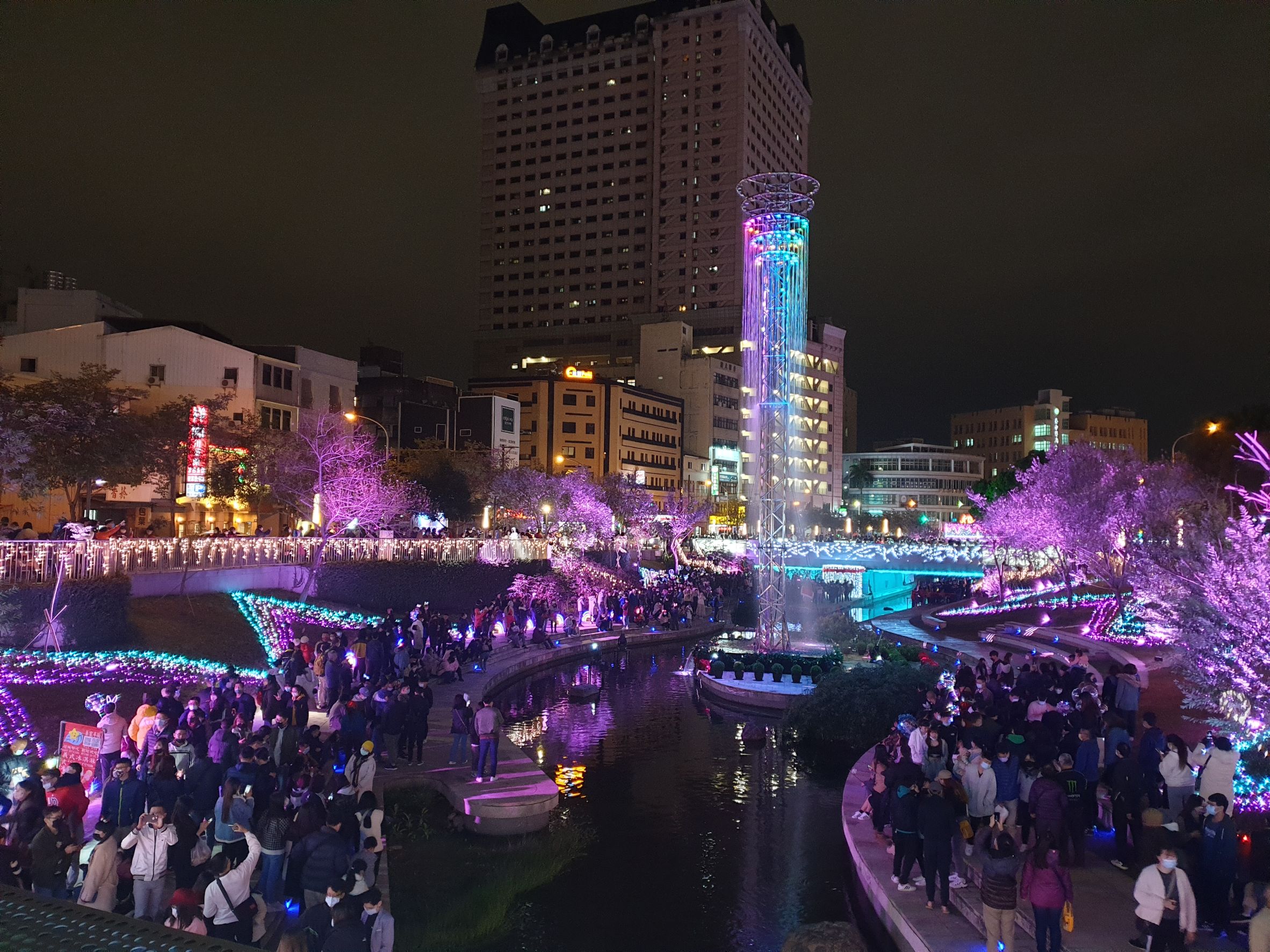 市府新聞局表示,2021耶誕嘉年華場域相較去年大幅增加,包括舊台中火車站、柳川展區延伸至二期自立街段、綠川從雙十路、建國路段至民權路段,更新增台中文學館和市役所,使民眾漫步舊城區時,不僅可欣賞繽紛閃耀的燈飾,更可至周邊商店消費、探詢台中在地好滋味、體味老台中的故事。