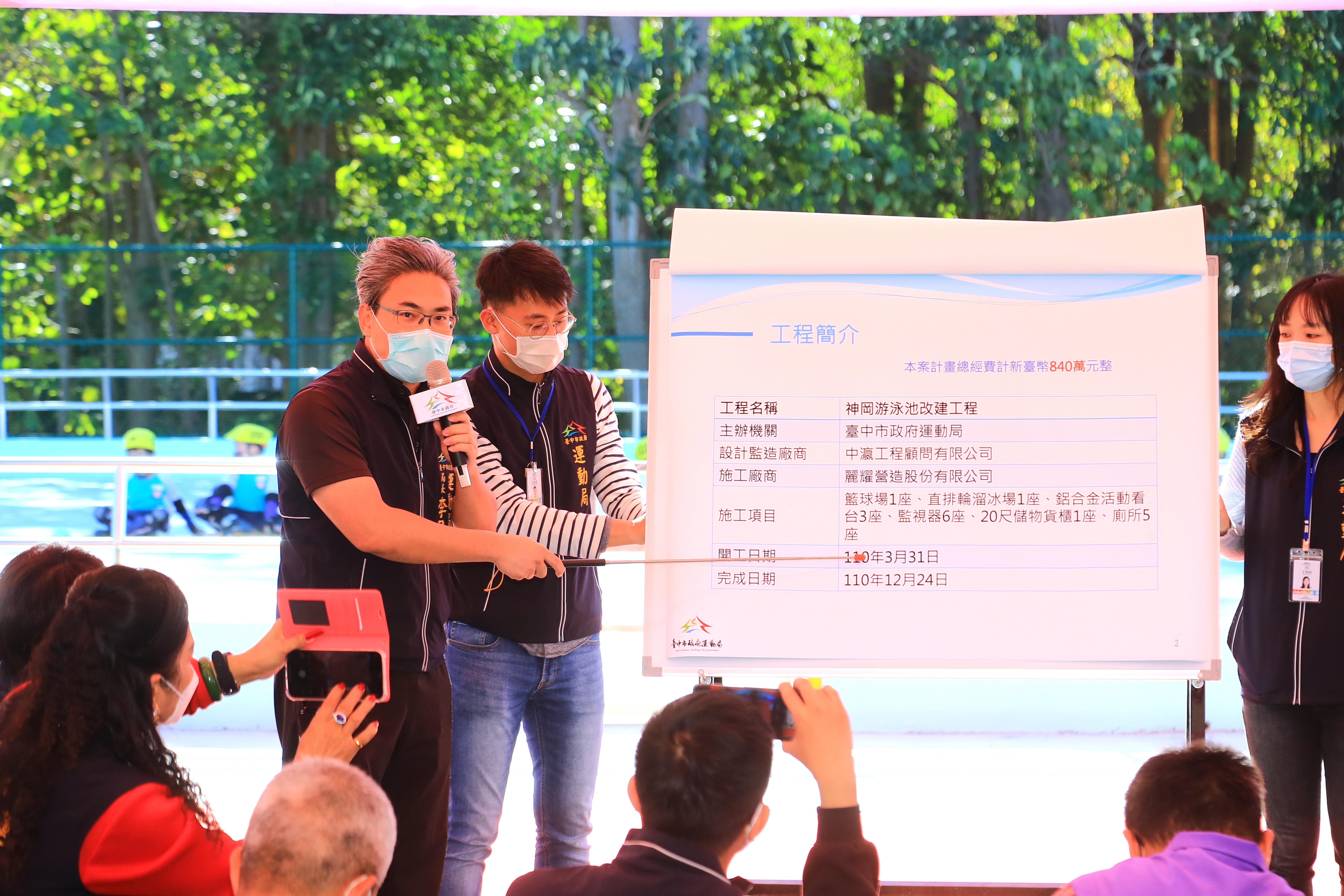 運動局說明,神岡游泳池於民國84年興建,100年因故停止營運,歷經數次委外營運招標未果,迄今歷時27年,台中積極推動各項運動建設,於去年聽取地方建言後於3月動工,由市府自籌總經費達840萬元進行整建,規劃改建為籃球場與溜冰場,並加速推動於去年12月底完成。