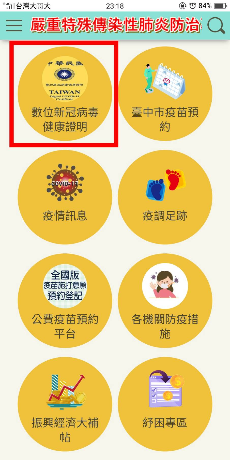 數位新冠病毒健康證明資訊:https://www.taichung.gov.tw/1174224/1174227/1968480/1968483/post(1/21*16)*研考會