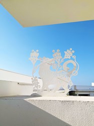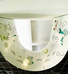 而台中市動物之家后里園區也新增了一組多件作品《守望:動物國探索》,將剪紙動物設置在園區的各個角落,圖像會隨著自然光影環繞在建物周遭,象徵著這些貓狗守護著動物之家,並時時刻刻陪伴著人類,入園訪客可以穿梭探險園區,感受與毛小孩不期而遇的驚喜。