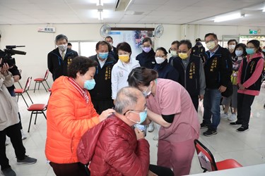 今日視察,盧市長現場再三叮嚀長輩注射完要多喝水、多休息,同時要戴口罩、勤洗手,保護自己也保護他人。今、明兩日適逢西洋情人節及元宵節,盧市長也親切地和志工及長輩祝福佳節愉快,現場洋溢溫馨氣氛。