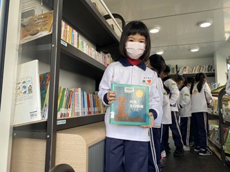 台中市行動圖書車再添生力軍!首部太陽能板供電智慧綠能行動圖書車今(25)日正式亮相,活潑童趣的閱讀地球圖像加上綠植栽花葉點綴設計,格外吸晴,學童興奮地排隊上車選書、借書,直呼「好開心!」台中市政府文化局長陳佳君表示,感謝文英基金會捐助經費與市府合作打造台中市第1部智慧綠能行動圖書車,讓「行動服務看得見,閱讀資源不受限」。