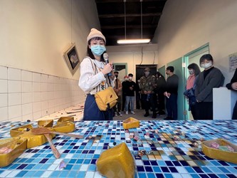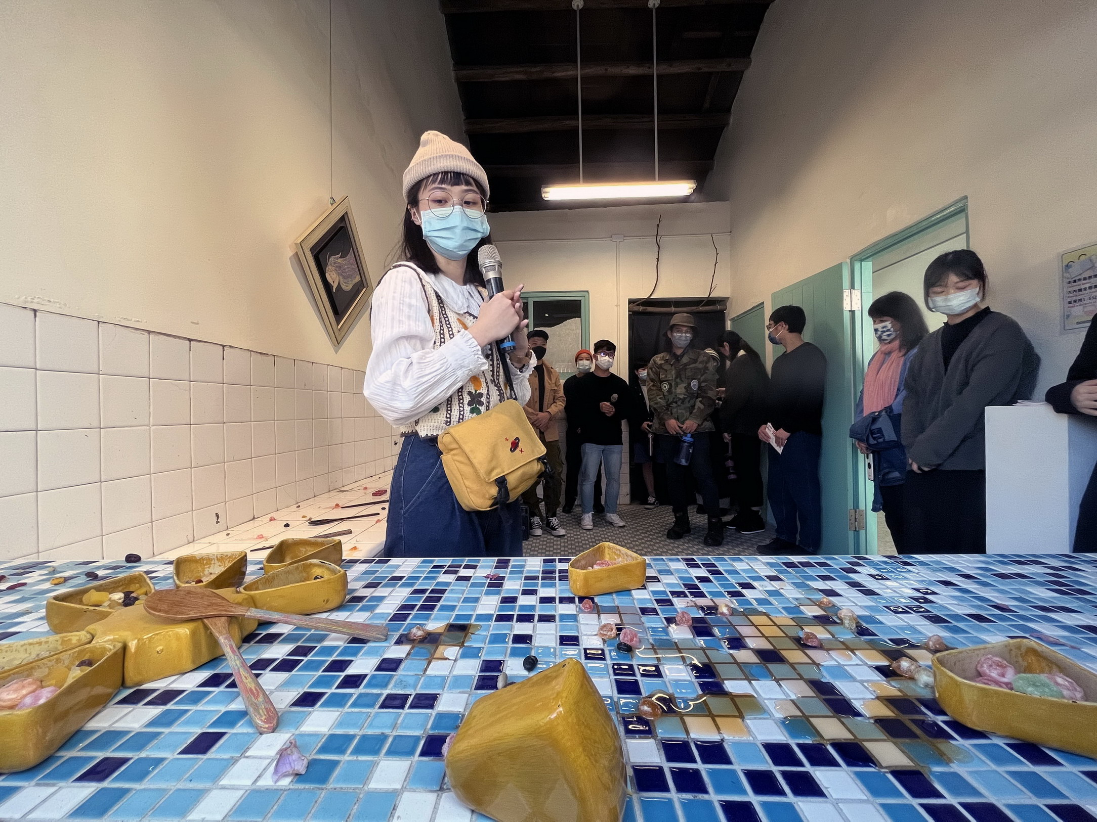 張家翔說,清眷園區展出8位校園藝術家的作品,向著左右房舍延伸,讓民眾在藝術作品的引領下體驗眷村的空間與記憶;各自運用不同媒材的作品融入歷史空間,包括繪畫、陶藝、漆藝、文字、影像和裝置藝術創作等,重新詮釋清眷的歷史空間機能和象徵意涵,也將屬於地方的記憶、色調、氣息與溫度保存下來,讓民眾在「行進間」不經意地發現藝術,進而受到感動。