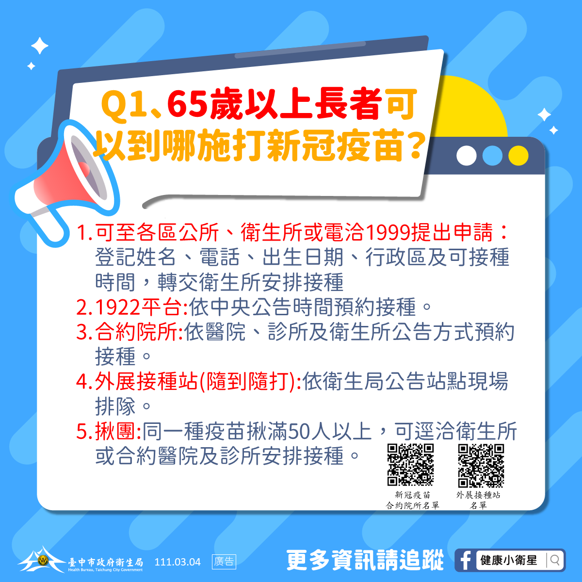 中市府守護長者健康  65歲以上多管道預約施打疫苗