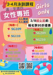 38日是國際婦女節,台中市政府運動局關心女性朋友忙碌之餘也鼓勵參與運動促進健康,各區國民運動中心今(8)日規劃多項女性專屬優惠活動,歡迎踴躍參與。運動局長李昱叡表示,為提升台中規律運動人口,各區國運中心依據不同運動需求,推動多元女性運動專案,促進全民運動風氣。
