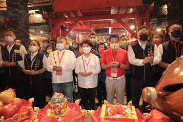 台灣宗教年度盛事之一「大甲媽祖繞境進香」今(8)11時將正式啟程,台中市長盧秀燕關心繞境防疫安全,今早特前往大甲火車站及大甲鎮瀾宮視察防疫情形,她到廟前疫苗3OK識別證兌換站時也出示小黃卡接受驗證,提醒民眾務必接種完三劑疫苗才可參與繞境,並遵守戴口罩、勤洗手等個人防疫措施,暫停鑽轎腳、搶轎等儀式,呼籲市民持續落實防疫,保護自身與他人健康安全。