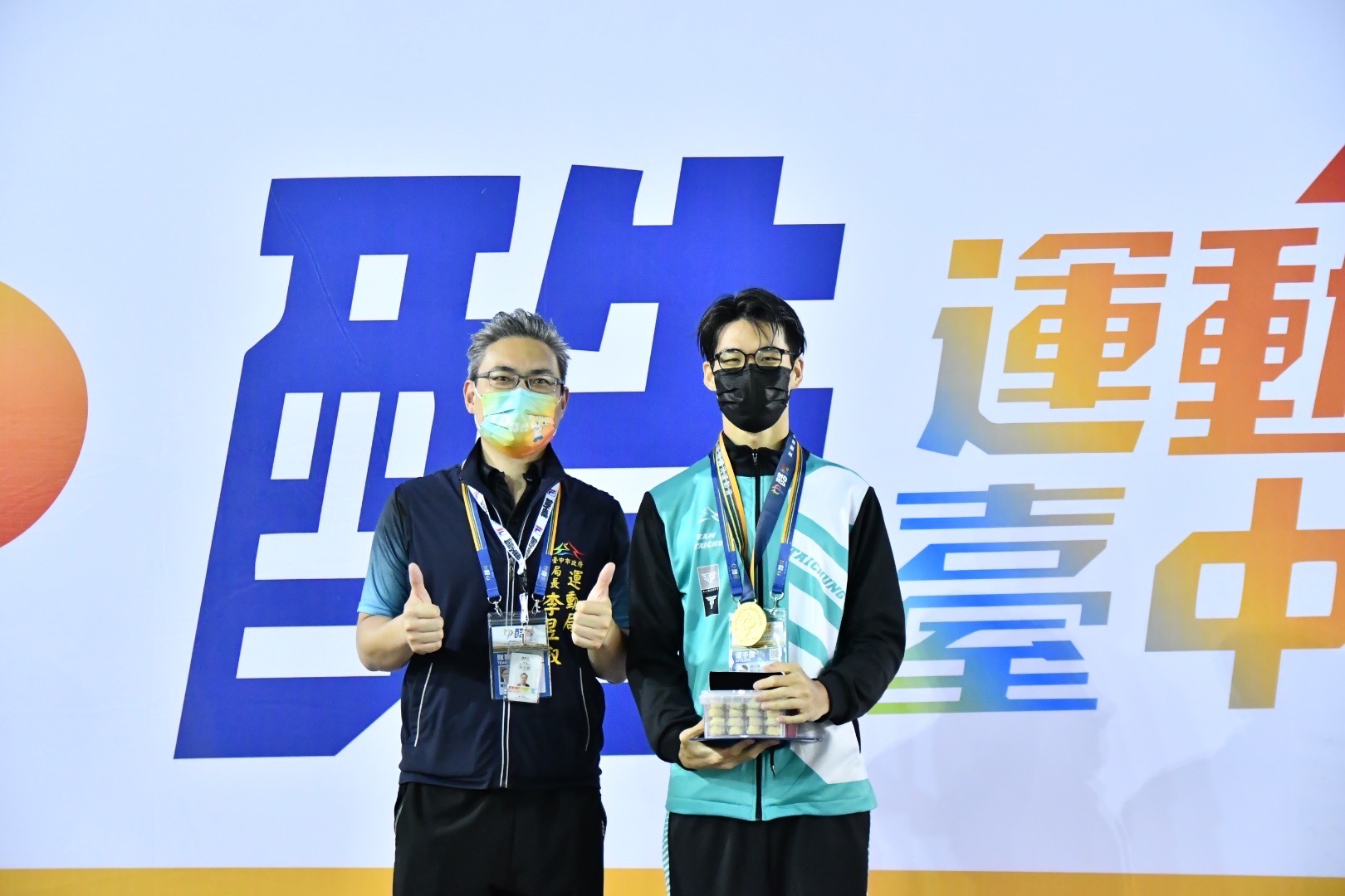 陳世約勇奪視障男子100公尺仰式金牌,運動局長李昱叡親頒獎牌