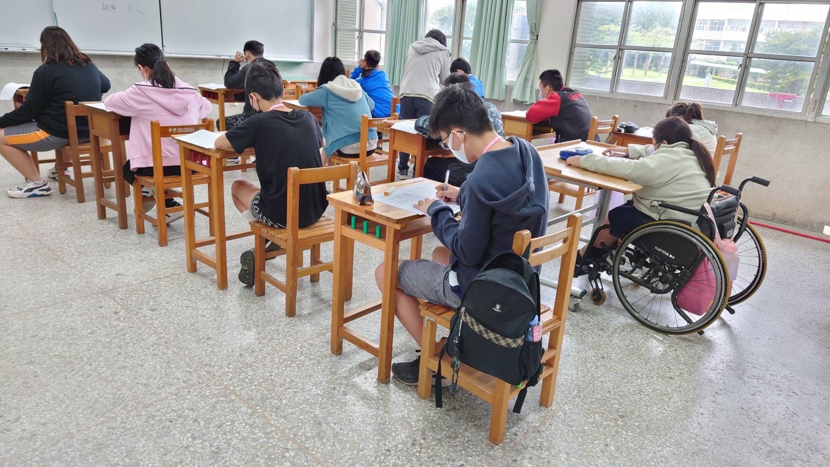 此外,為避免群聚,評估試場的安排,1班不超過30人,每名學生僅限一名人員或家長陪同,評估過程中打開教室窗戶與氣窗,保持通風良好,評估結束後再進行試場消毒,讓所有參加評估學生、家長及陪同人員都能安心應試、陪考。