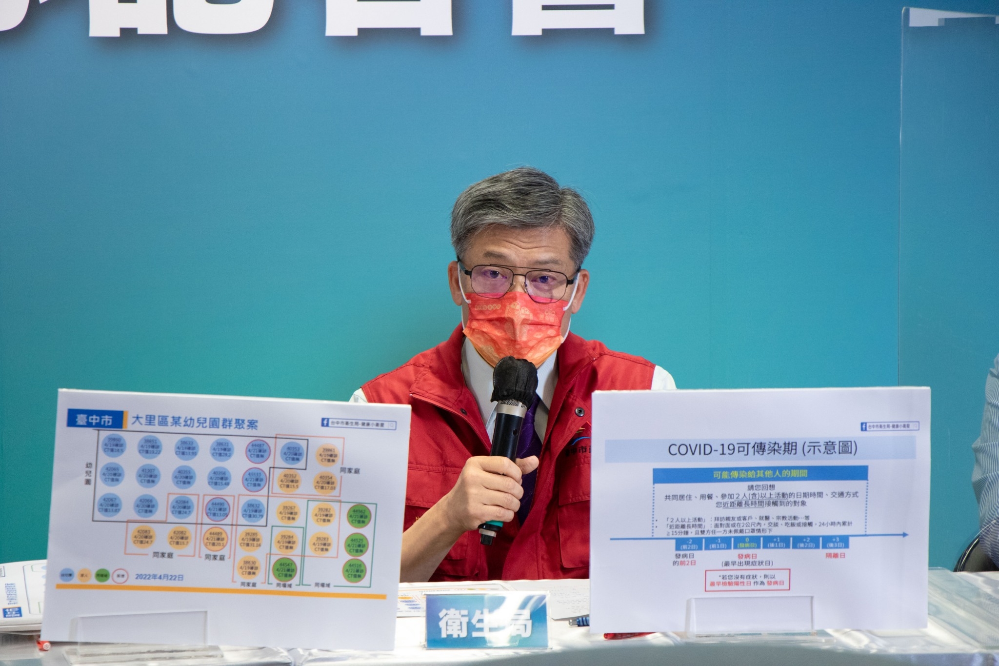 有關停課標準相關議題,教育局長楊振昇表示,台中市校園停課標準採「分齡方式」,國小以下學校及幼兒園維持教育部舊版停課標準,國、高中則依教育部新版停課標準辦理,因此目前不跟進台北市大規模停課做法。