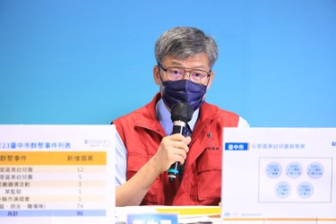 衛生局長曾梓展今日也針對重要群聚或關注案件說明,其中頂尖幼兒園今日新增12例(1例老師、學生1人、10例為家庭群聚案延伸),目前累計共44例(6例老師、12位學生、26例為家庭群聚延伸);后里公托幼兒園新增5例;阿妹演唱會新增1例,累計40例;某監獄新增1例確診;宗教繞境活動新增3例。