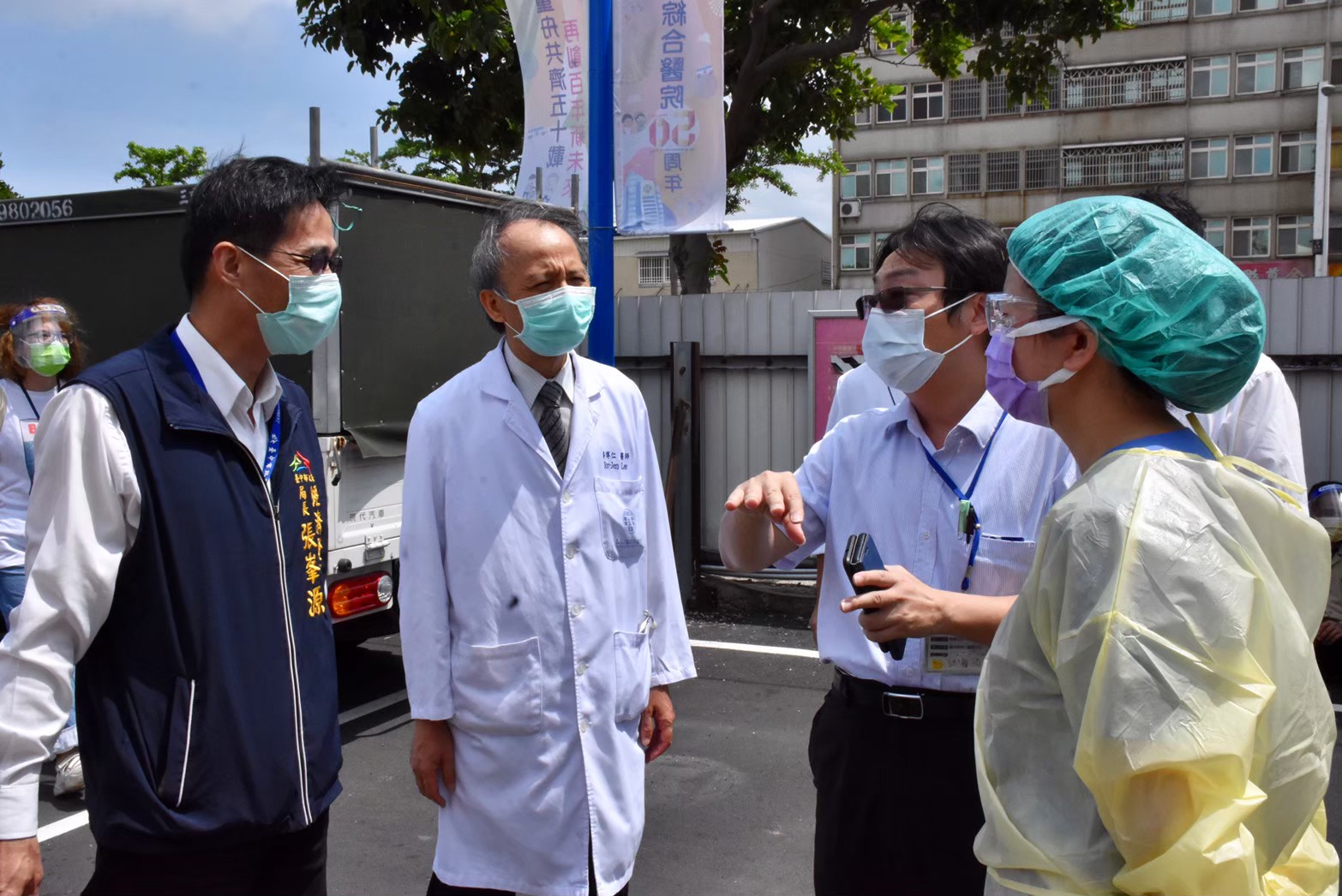 張局長指出,台中有超過26萬家以上公司、商業、工廠及特定工廠等企業場域,因此台中防疫工作需仰賴各企業一同參與。市府已設計確診者疫調單,一旦市民篩檢確診,衛生局將發送簡訊請確診者上網( https://www.health.taichung.gov.tw/2041903/post )填寫疫調單,由確診者自行填報密切接觸者資訊。