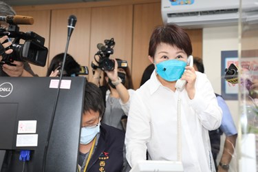 市長盧秀燕今(27)日前往西屯區公所關懷中心視察,除為防疫同仁打氣