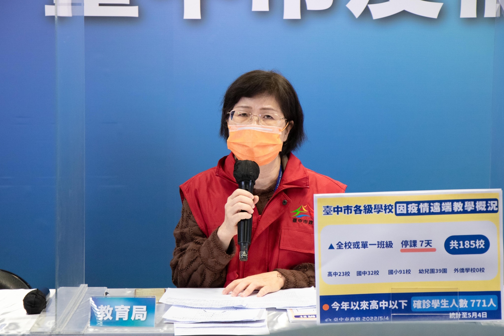 教育局副局長王淑懿說明台中市快篩劑領取流程,預計從明日開始,由各校防疫長依流程進行匡列及通報後,可以派人員就近到台中市的「5個中心學校」進行領取,領取時間是週一到週日上午8時到下午5時,領取後由各單位發放「快篩試劑」給密切接觸者,方便學生居家隔離時的快篩需求。若發生於夜間,則是先透過通訊軟體發送居家隔離宣導通知單給密切接觸者,再由各校派員於日間至中心學校領取快篩試劑,並通知家長或家人來領取。