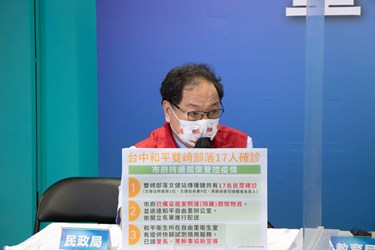 有關和平區雙崎部落目前疫情,民政局長吳世瑋說明,雙崎部落文健站共有17人確診,市府已備妥居家照護或隔離的關懷物資,送達和平自由里辦公室,陸續進行後續配送居照或居隔者家中;自由里衛生室並有提供快篩試劑領用服務。市府將持續關懷以管控疫情。