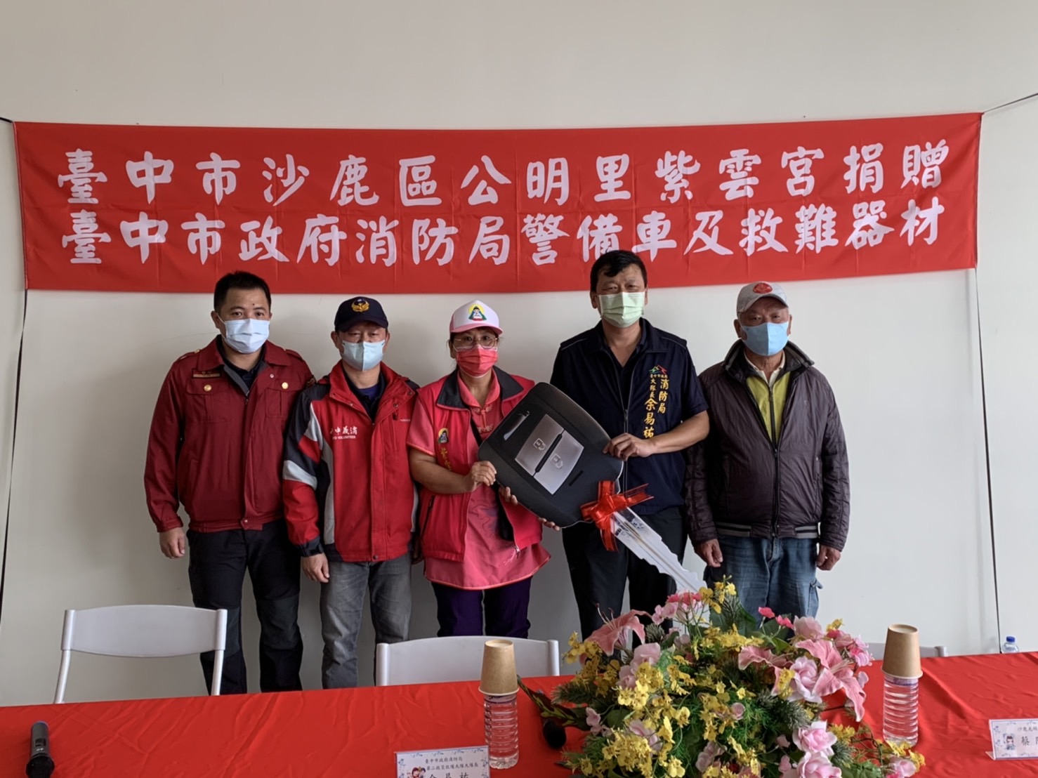 消防局指出,紫雲宮座落於台中市沙鹿區公明里,香火鼎盛,深受信眾愛戴,平時關懷社區老人及學齡兒童不餘遺力,義行善舉令人欽佩不已。消防局也說,政府資源有限但民力無窮,由衷感謝紫雲宮慷慨解囊捐贈消防警備車及救難器材,有效提升消防救災能量。