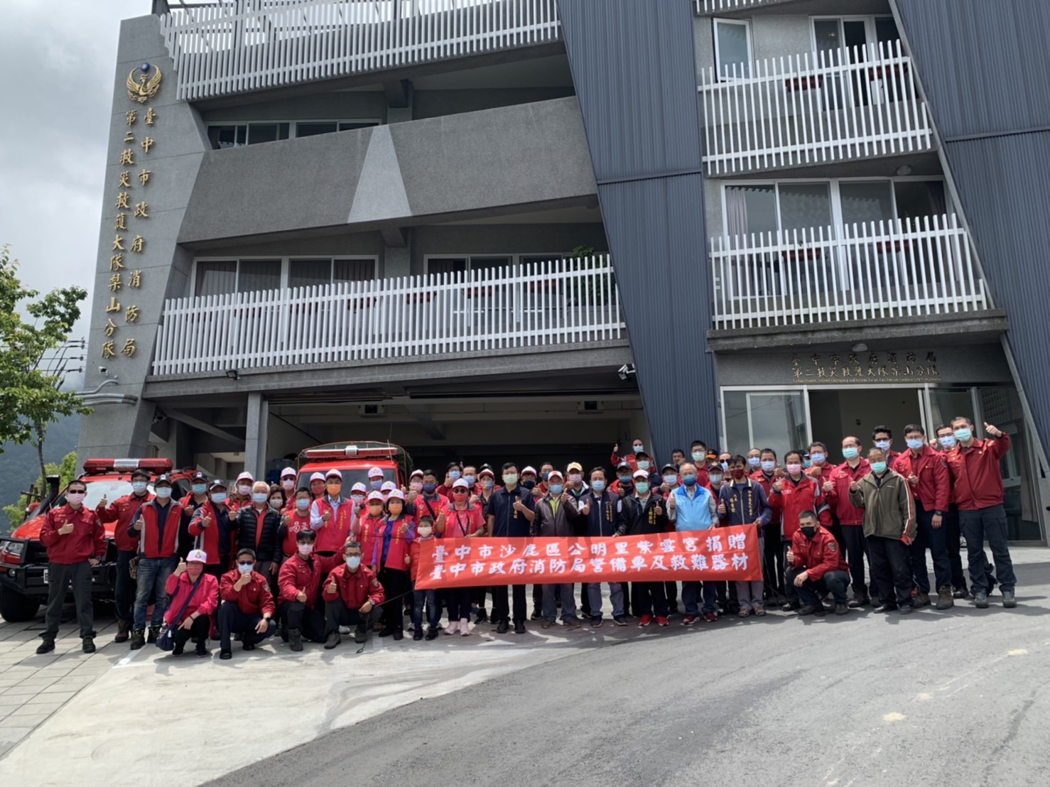 台中市政府消防局梨山分隊為維護登山民眾安全,時常動用消防警備車及救難器材,加速耗損速度,沙鹿區「紫雲宮」獲知後主動捐贈價值約新台幣196萬元的消防警備車及救難器材,以及住宅用火災警報器300只,今(9)日舉行捐贈儀式。消防局感謝宮廟善行義舉,共同守護市民生命財產安全。