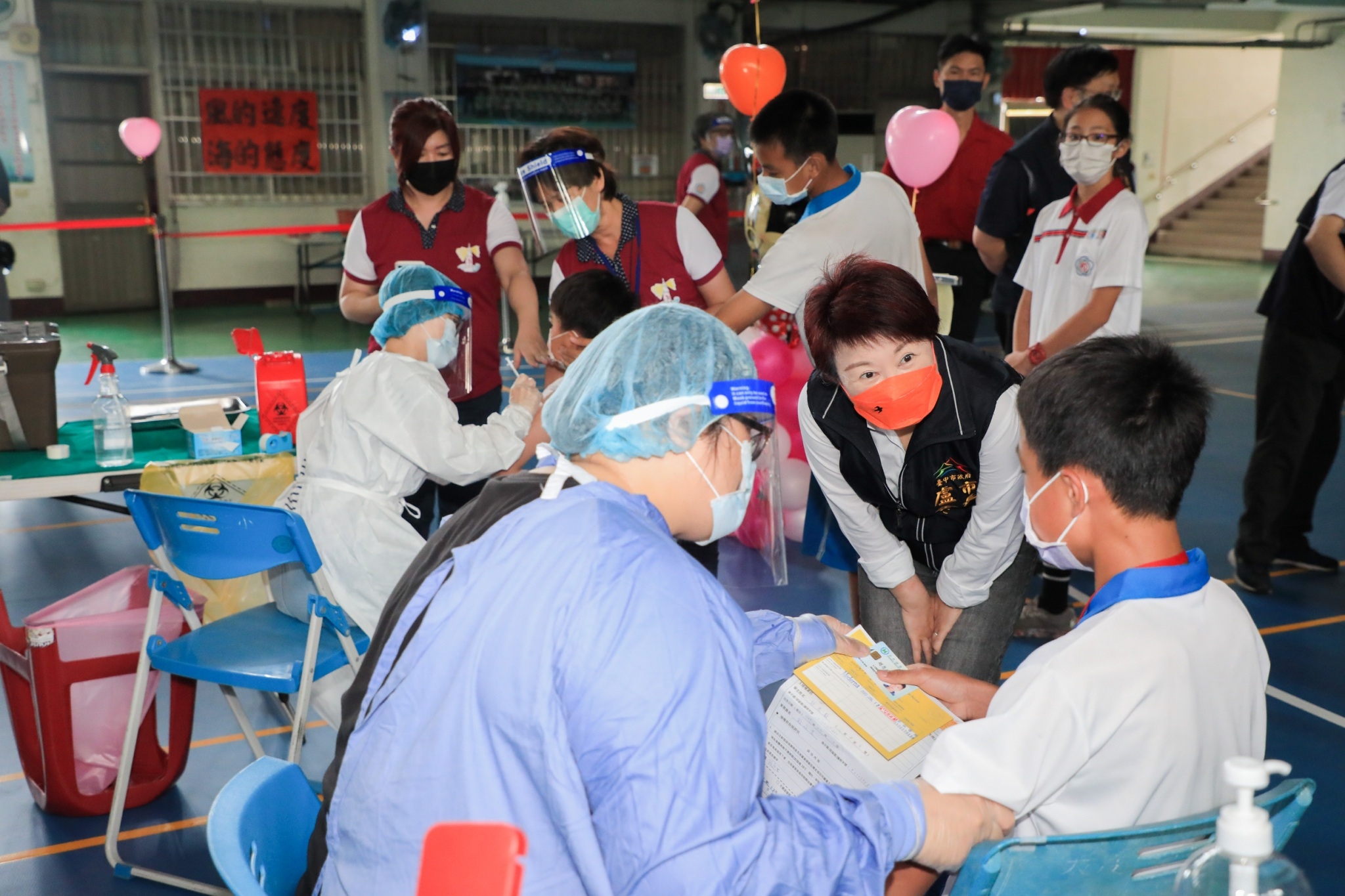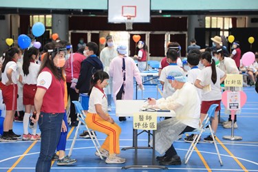 今日包括盧市長、教育局副局長葉俊傑、衛生局專門委員陳淑芬、大肚區長白峨嵋、大肚國小校長陳淑華及大肚國小家長會皆到校關心疫苗施打情形。(5/12*6)*教育局