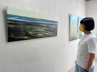 文化局說明,此次成果展,藝術家吳宏德以油畫、數位輸出及錄像等媒材,透過實地踏查台中港至高美濕地一帶的地景,創作《海風吹拂之地》,記錄海線地帶強風吹拂的獨特意象;許淳珺作品《附皺褶》,則以紙張上的皺褶變化比擬駐村時長期感受的潮濕狀態,使用速寫的筆調和具象的表現方式,講述清眷紀事。