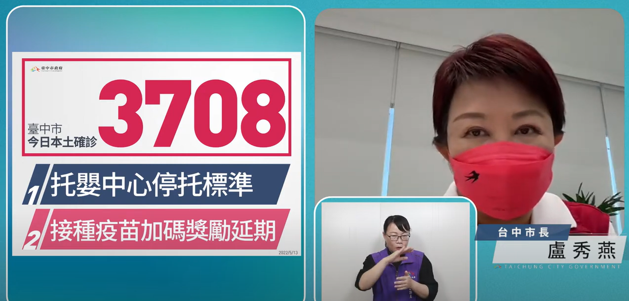 全國今(13)日本土確診新增6萬4972例,台中市本土個案新增3708例。市長盧秀燕今日於防疫線上記者會表示,全國與台中的確診數都有微幅減少,但仍不能掉以輕心。為持續推升疫苗接種率,市府決定將「長者接種疫苗加碼獎勵500元現金」延長到5月31日,明日台中有開設40餘處快打站,提醒尚未施打1至3劑的市民把握時間,踴躍到場接種,也別忘了攜帶雨具,留意雨中路況。