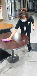 安心即時上工進用人員運用酒精噴瓶自行手部消毒