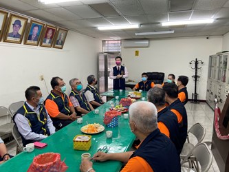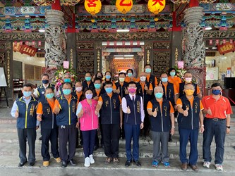 江主委一早便率客委會委員和同仁抵達天乙宮,先和廟方主委林坤熙及三位副主委、總幹事等全體幹部、志工座談,並代表盧市長祝福天乙宮宮務昌隆、會務順利,隨後一同上香獻禮祝壽,預祝端午佳節快樂,也祈求疫情儘早結束。