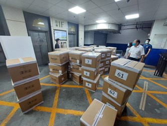 黃局長指出,為提高發放效率,住宅處上周已預先拆箱清點快篩試劑,每2劑分袋,再送交相關公(工)會,以利公會發放。他特別感謝台中市公寓大廈管理維護服務商業同業公會及台中市公寓大廈管理服務職業工會的協助,盼能以最快的速度將快篩劑交到每一個從業人員的手上,公私協力、一同防疫,共同守護市民健康。