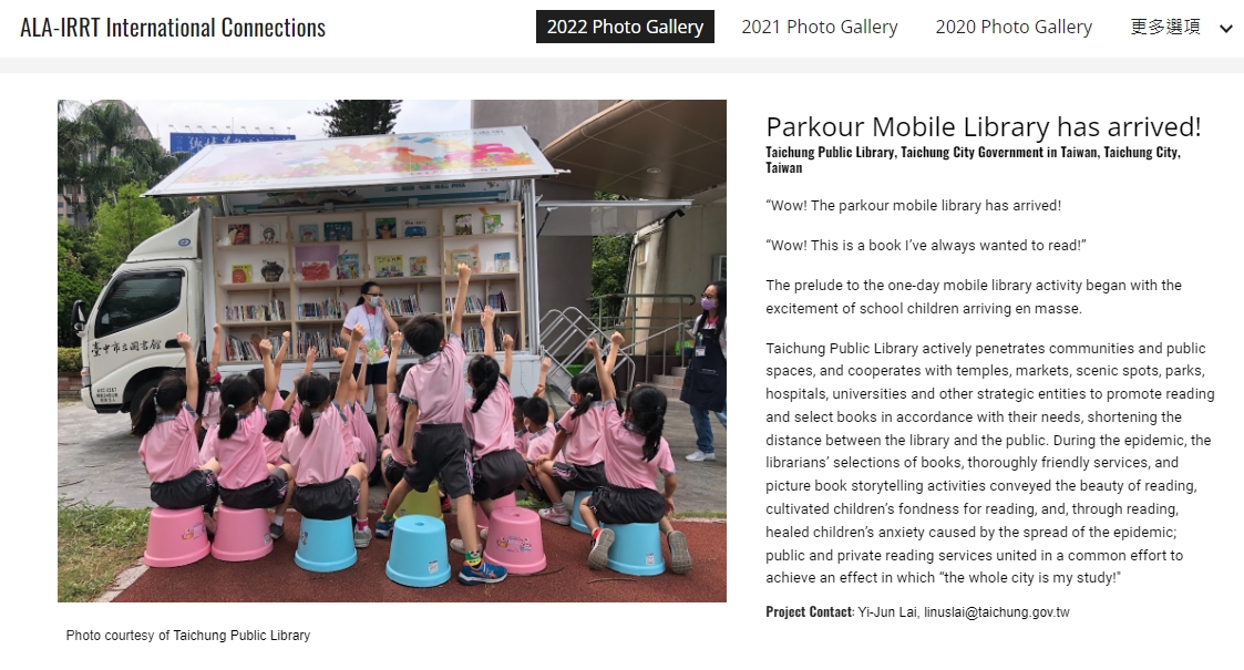 臺中市立圖書館「跑酷行動圖書車來了」入選2022年「世界圖書館的最佳實踐」照片櫥窗