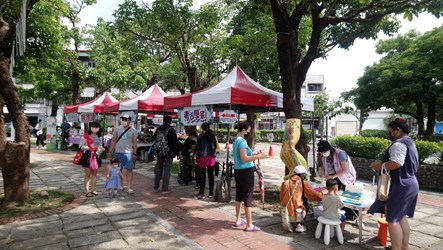 在屯藝中心戶外露天劇場則有魔術師粘立人結合魔術的精采魔幻秀,讓大小朋友現場體驗魔術的驚奇與歡樂。玎酉擊樂的演出,為親子觀眾打造有趣的垃圾桶音樂與卡通音樂,讓親子在擊樂中享受愉快的下午!