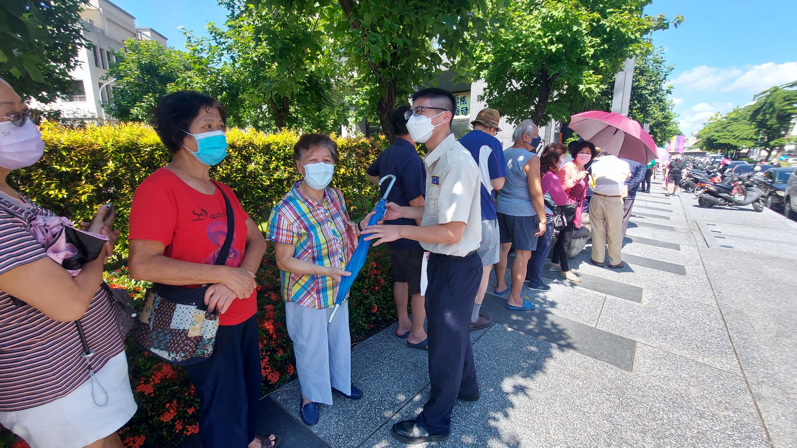 吳局長指出,為確保人員分流及維持舒適的施打環境,市府要求各快打站指揮官再度審視排隊動線;調整等候區在有遮蔽的陰涼處,或增設遮陽棚、水冷機等應變措施,避免民眾烈日下久候造成身體不適;增派醫護人員加速施打作業;派員協助維持報到及獎勵品換發秩序;並隨時向排隊民眾解說施打情形,減少民眾等候疑慮,市府即時應變、優化服務,就是希望接種環境更便利舒適。
