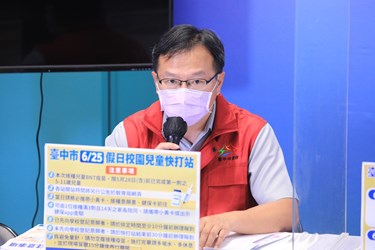令狐副市長指出,校園假日快打站明日將登場,提醒各位家長依通知時間、地點前往,記得攜帶健保卡、小黃卡和接種意願書,每位學童可由一位打滿三劑疫苗且滿14天的的家長進入校園陪同。教育局主秘郭明洲補充,醫療院所昨日已開始施打;校園集中接種從今日開始,有39個醫療院所團隊依序入校為學生接種;明日將開設12處校園快打站,請已登記者提早10分鐘報到,未先向學校登記的意願者,可於快打站結束前30分鐘報到。