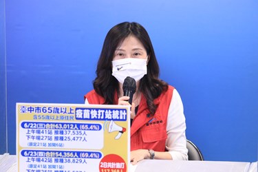 令狐副市長進一步說明,若以台中市65歲以上長者41萬1,607人計算,第四劑疫苗從5月16開始在醫療院所施打,一直到快打站開設前一天6月21日止,統計只打1萬多人,涵蓋率僅3.4%,而快打站短短兩天就施打超過11萬人,65歲以上長者涵蓋率「大邁進」28.83%,達32.27%。