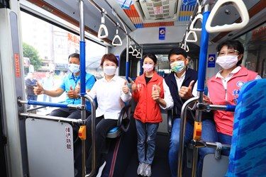 盧市長提到,台中電動公車數量全國最多,六大幹線公車番號分別為100200300500700900,因應搭乘人數提高班次,尖峰10分鐘一班,離峰15分鐘一班,均採低底盤無障礙公車,另以6個顏色加強識別系統,站牌、候車亭等各項設施均統一色系,讓大家容易辨識。