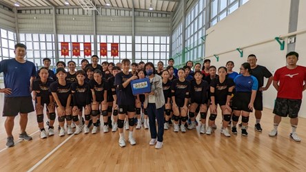 2022第21屆亞洲U20女子排球錦標賽7月4至11日將於哈薩克努爾蘇丹登場,台中市東山高中在校生及校友共有8名入選我國U20代表隊,並與其他4名球員緊鑼密鼓展開集訓;台中市政府教育局體育保健科長劉姵君昨(27)日前往東山高中訓練場,為教練選手們加油打氣,致贈營養補給品及防疫用品,祝福代表隊全力展現、勇奪佳績。