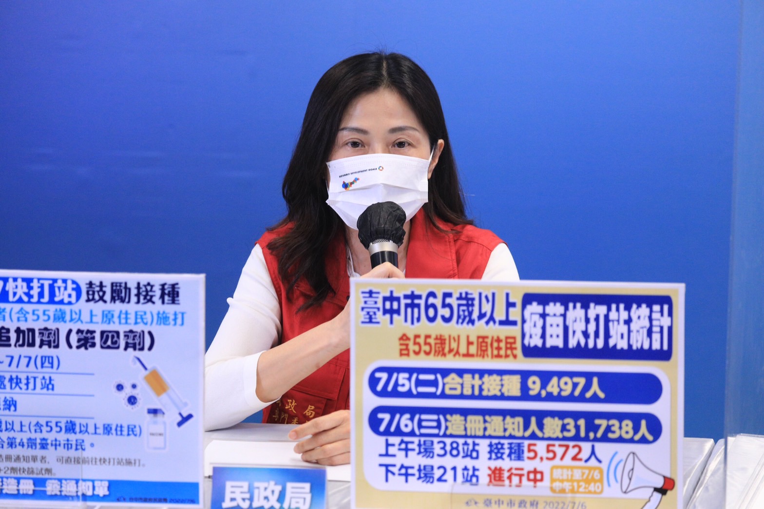 令狐副市長補充說明,首批6個月至5歲的莫德納嬰幼兒疫苗45萬劑已經抵台,由於疫苗抵台後還需14天檢驗封緘,中央預估最快在7月21日配送到各縣市,因為此波施打年紀較小,市府嚴陣以待,制定「四管齊下」計畫,等中央施打期程定案,會再跟各位市民朋友報告詳細的施打計畫。