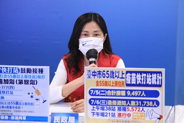 全國今(6)日新增3萬4,499例本土個案,台中市新增4,669例本土個案,其中4,461例為快篩陽確診,占95.55%,相較上週三(6月29日)6,117例下降23.67%。副市長令狐榮達今日召開疫情線上記者會表示,截至昨日為止,台中已有16萬122位長者完成第4劑疫苗接種,目前台中市65歲以上長者第4劑COVID-19疫苗涵蓋率38.9%,排名穩居六都第一。