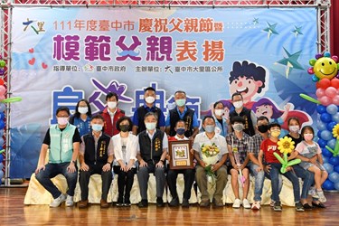 大里區公所今(23)日舉辦慶祝父親節暨模範父親表揚活動,邀請大里區內受表揚的40位模範父親一起提前慶祝父親節。副市長黃國榮出席,與大里區長鄭正忠一起代表市長盧秀燕頒發受獎人印有「良父典範」題詞的精神獎牌,致上最真摯的感謝與祝福,祝賀天下爸爸們父親節快樂。