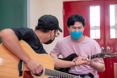 教育局表示,全國視障生音樂夏令營去年因疫情停辦一年,今年全國視障生無限愛音樂夏令營由台中市立啟明學校、台中北區扶輪社共同主辦。營隊中除介紹與帶領學員賞析經典拉丁風格的樂曲My Little Suede Shoes外,並藉由不同樂器分組教學,讓學員學習運用樂器共同演奏。