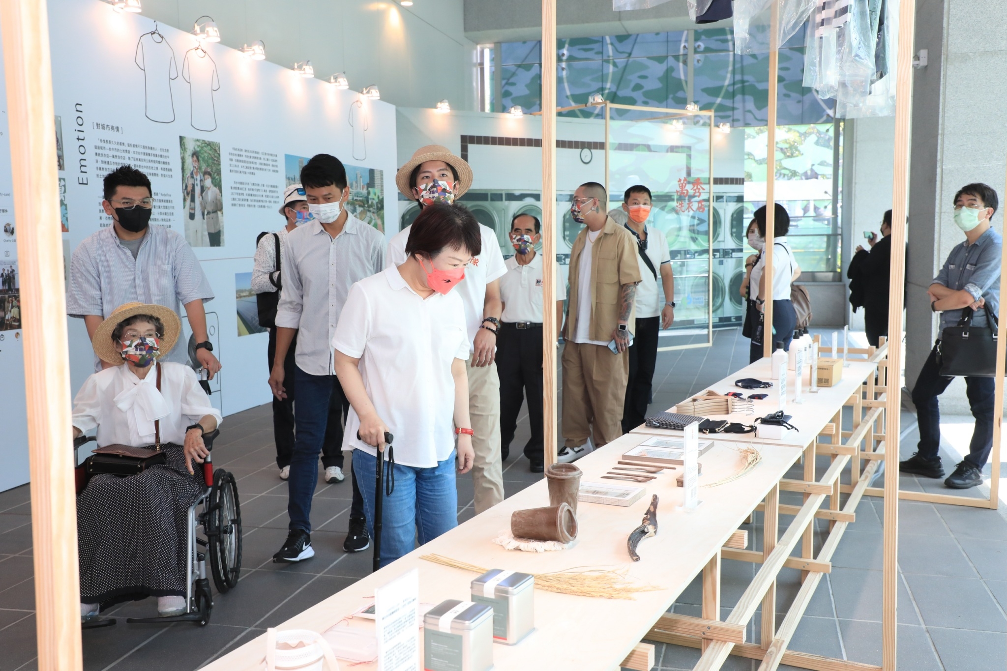 今日盧市長、交通局長葉昭甫、中捷董事長林志盈、新聞局長鄭照新與萬吉阿公、秀娥阿嬤、品牌主理人瑞夫為限定店開幕,以Tufting手織地毯「手織紅線」將萬秀的循環時尚和中捷的環保永續「織」在一起,市議員黃馨慧也派代表共襄盛舉。(8/13*10)*中捷公司