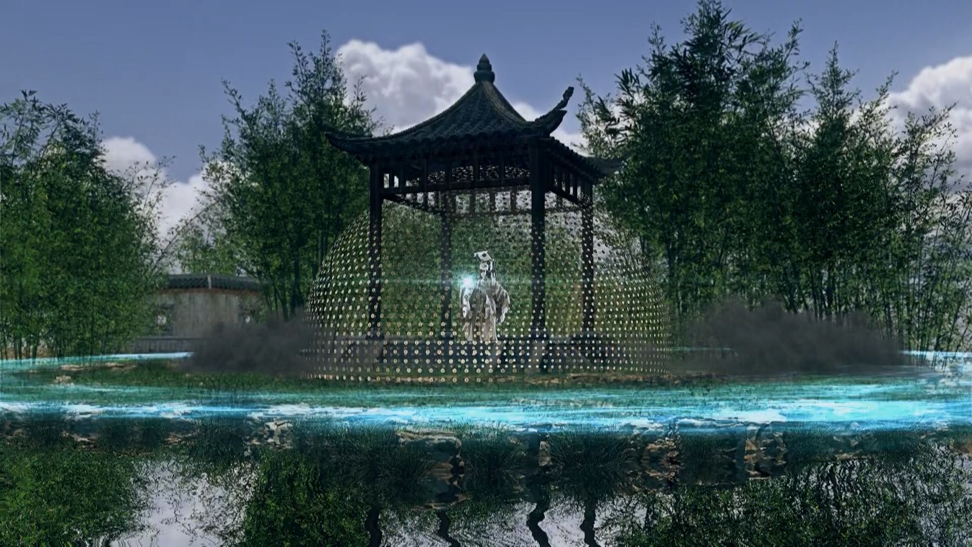 台中木偶劇團長王英潔表示,自去年成為屯區藝文中心的駐館團隊後,不斷思考如何將傳統布袋戲與科技結合,經與導演、團員、專業團隊共同討論,除常見的光雕、動畫,也進一步發展浮空投影、光影設計、4D體感設備,盼帶給觀眾耳目一新的感受。導演邱一峰說明,「4D體感」能讓觀眾在觀看過程中,享受震撼的聲光效果,同時也可透過劇情引導,讓身體體驗劇情緊張的氣氛,打破印象中的布袋戲,帶來全新觀賞體驗。