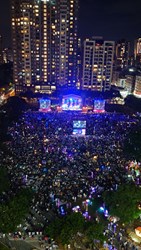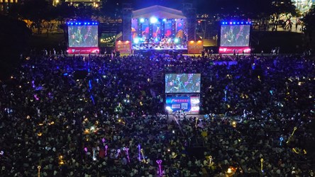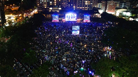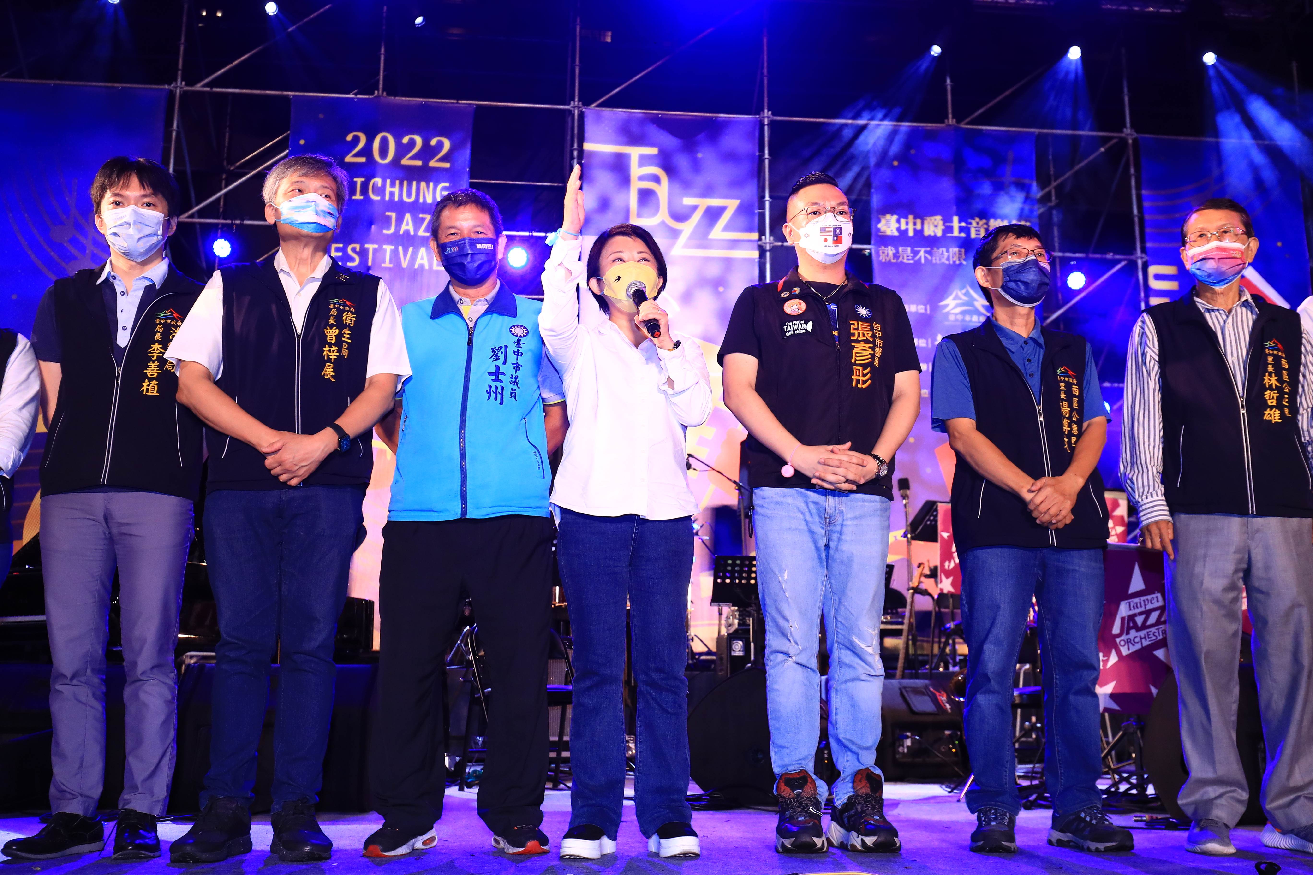 台中指標性音樂活動「2022台中爵士音樂節」今(15)晚7時起一連9天重返台中市民廣場,開幕音樂會現場湧進近十萬名樂迷席地而坐,共同聆聽爵士音樂魅力,開心迎接因疫情睽違2年的爵士盛會,市長盧秀燕也參與這場音樂饗宴,她上台以10秒旋風致詞表示,「台中爵士音樂節回來了!在這美麗的夜空之下,請大家好好欣賞!」